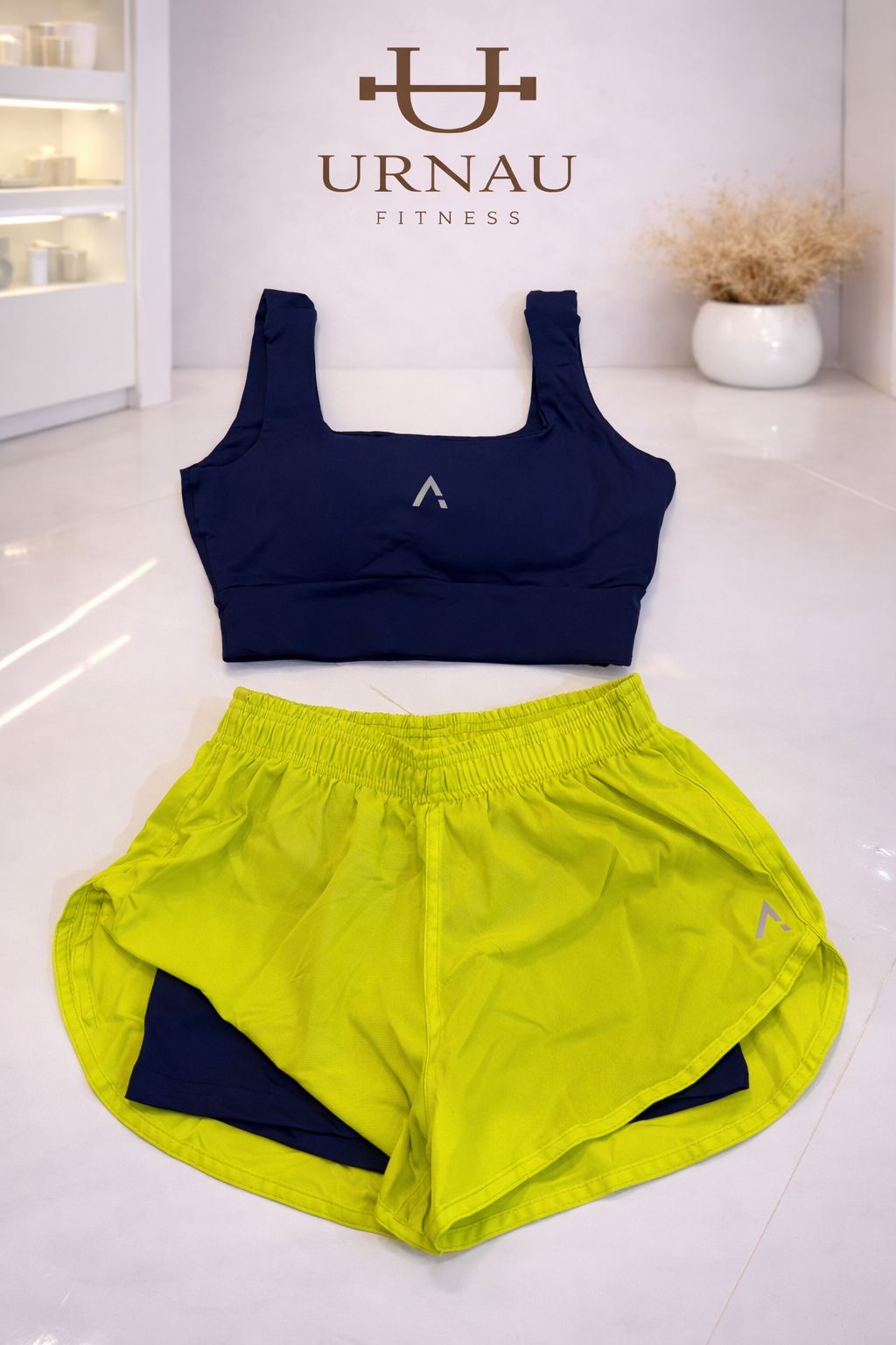 Conjunto de top azul e short duplo verde e azul - Tamano: P
