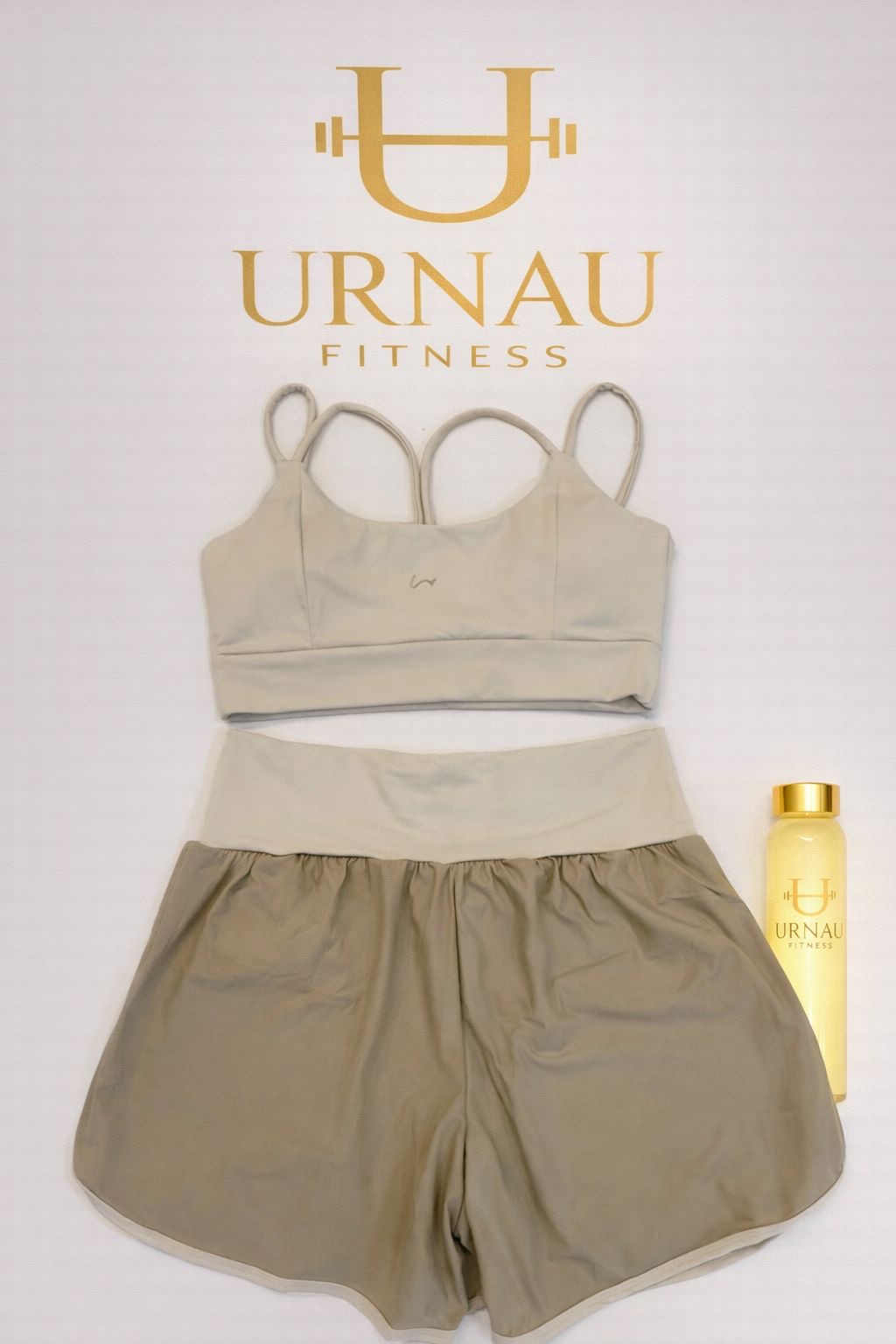 Conjunto de top de alças finas e short duplo bronze -