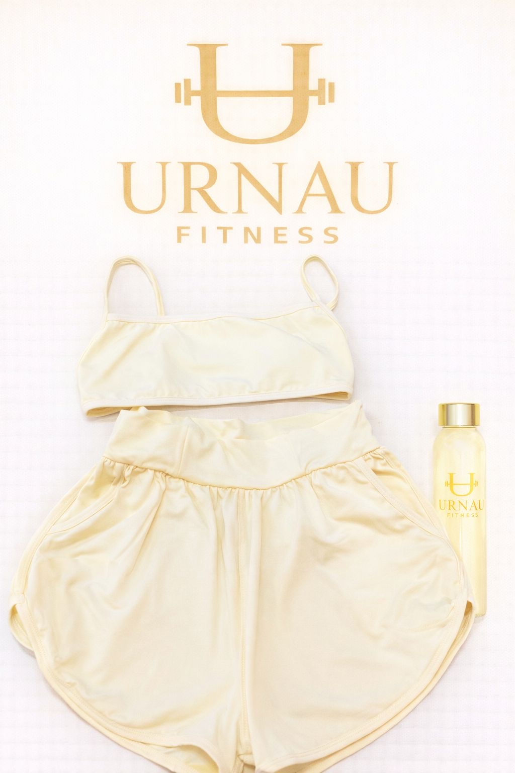 Conjunto de top e short com bolso, modelo curto- amarelo- tamanho: P/M