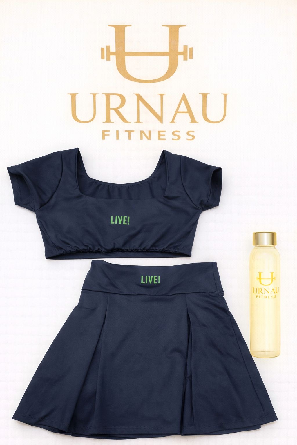 Conjunto Live Top Preto com bojo removível e Saia com short duplo- Tamamho: 36/42 -
